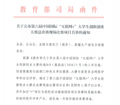 据悉,2020年第六届中国国际“互联网+”大学生创新创业大赛由教育部主办,华南理工大学、广州市人民政府和深圳市人民政府共同承办,大赛主要采用校级初赛、省级复赛、全国总决赛三级赛制。在校级初赛、省级复赛基础上,按照组委会配额择优遴选项目进入全国决赛。全国将产生共计1600个项目入围11月上旬在华南理工大学举行的总决赛现场赛。预祝我校团队在该项国家级赛事决赛中取得好成绩。