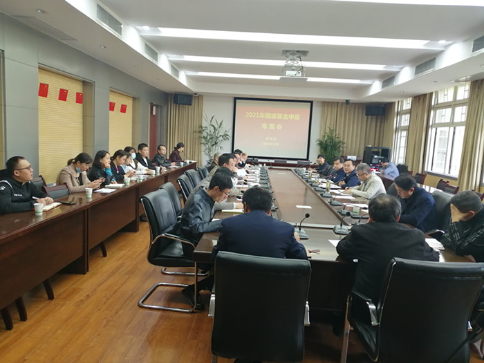 科技处处长武立权以及相关工作人员分别介绍了各学院年度重点工作推进情况及“十四五”重点研发项目选题概况,2020年国家社科基金和国家自然基金资助情况及2021年申报工作安排。(科技处)