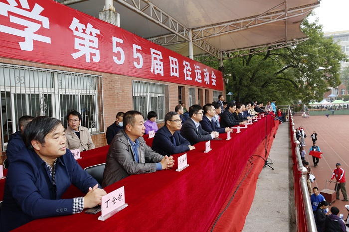 本网讯10月29日上午,我校第55届运动会在田径运动场开幕。校领导裴树东、李红、韩军、陈文兵出席开幕式,校体育运动委员会委员参加开幕式并在主席台就座。