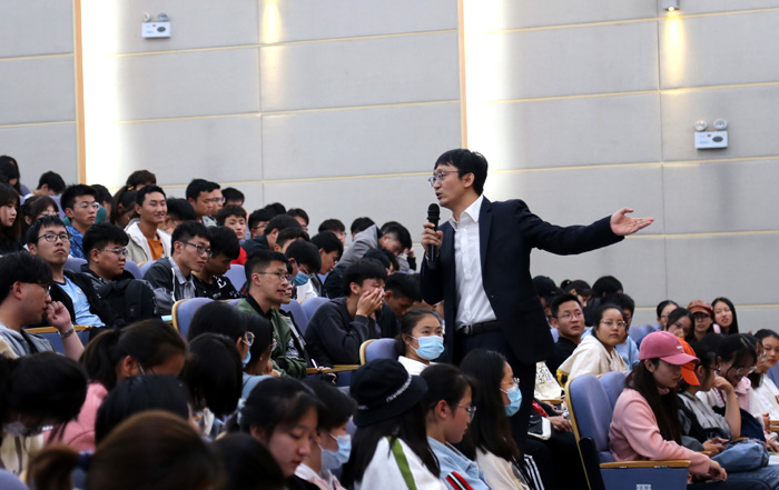 权龙哲从所带学生的“双创”课题出发,向大家介绍了团队是如何将机器人、人工智能、物联网、大数据、云计算等技术应用于农业工程领域。他强调,在“双创”工作中,机制是保障,氛围是基础,导师是核心,学生是主体,“双创”实践能够全面助力学生成才,在参与过程中不仅能提升学生创新创业素养,而且还能培养学生正确的人生观、价值观和世界观。他希望,同学们要积极参与到创新创业活动中去,积极向导师学习,将专业知识融入实践,大胆将自己的想法付诸实践。