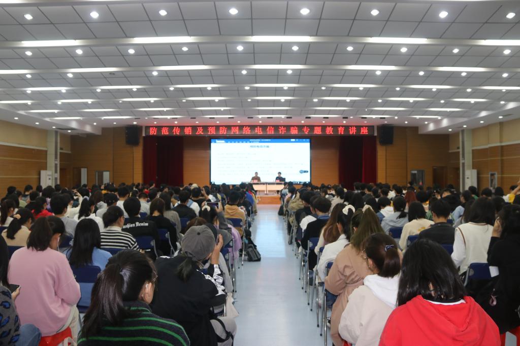 本网讯11月6日晚,由校保卫处、学工部和团委联合举办的防范传销及预防电信网络诈骗安全教育讲座在欣苑四楼学生活动中心举办。讲座邀请合肥市公安局琥珀派出所相关专家来校讲课,各学院团学工作负责人、所有班级团支部书记共计400余人参加。