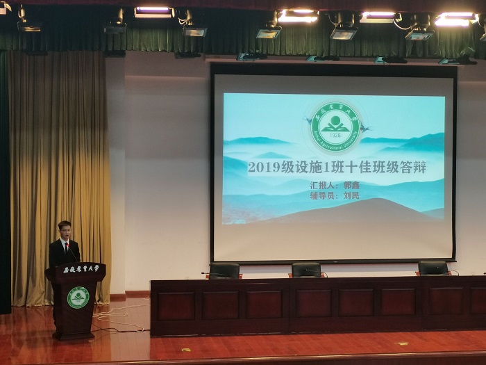 答辩现场,答辩人按照评选要求,围绕主题教育、“三风”建设、创新创业、未来展望和班级特色、亮点等内容进行答辩;评委老师们结合ppt汇报材料、现场答辩综合情况进行评分。