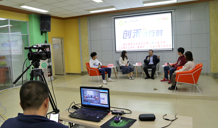 本网讯 11月7日晚,我校校友、黄山骆驼坑生态农业科技有限公司总经理方攀做客我校“创禾进行时”,以“立志做大山里的‘徽骆驼’,农业天地大有作为”为题,给大家带来了一场精彩的专题报告会。报告会采用线下与线上直播相结合的方式进行,各学院团学工作相关老师、入驻创客空间团队以及对创新创业感兴趣的同学共2550余人参加了报告会。