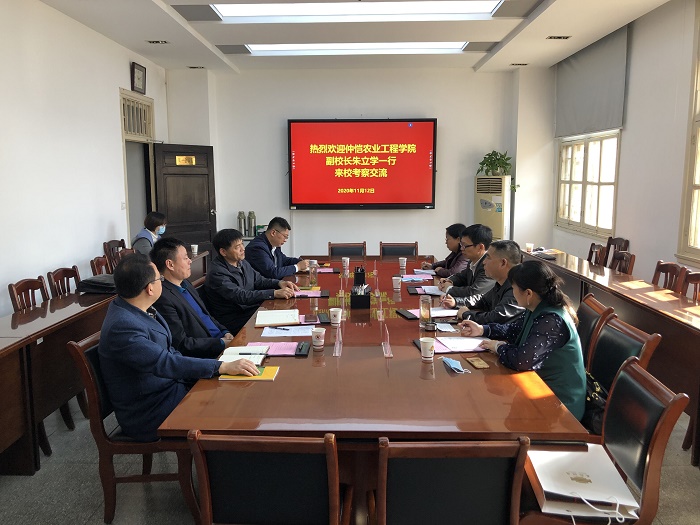 本网讯 11月12日,仲恺农业工程学院副校长朱立学一行4人来我校考察交流。常务副校长马传喜出席交流会,教务处、工学院、植物保护学院昆虫学系主要负责人参加了此次交流会,会议由教务处处长曹成茂主持。