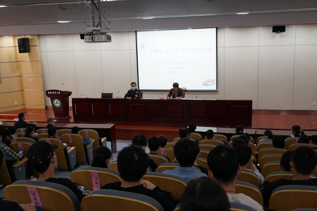 本网讯11月18日上午,我校传染病防控专题讲座在校第二报告厅举办。本次讲座邀请了蜀山区疾控中心急性传染病科主治医师毕方龙医生来校讲课。校党委常委、副校长韩军主持会议,各学院分管学生工作的副书记、专职辅导员,宿管、物业、食堂等后勤员工和服务人员,部分学生代表共计180余人参加会议。