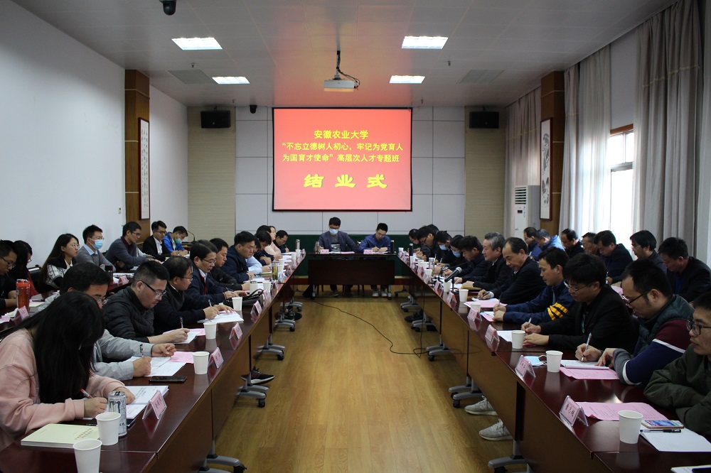江春在总结讲话中指出,学校高度重视人才工作,始终坚持党管人才、引培并重、用管结合。此次培训班是在全校上下深入学习党的十九届五中全会精神,科学谋划“十四五”发展规划之际,举办的高层次人才专题培训班,规格高、效果好、纪律严。通过这次培训,提高了大家的政治素养,开拓了学术视野,增进了不同学科、学院之间的交流,为高层次人才搭建了交流合作的平台,为今后跨学院、跨学科组建团队、协同攻关奠定了基础。他强调,党的十九届五中全会提出“科技自立自强”的新概念,各位高层次人才要服务国家发展大局,坚定理想信念,厚植科教报国情怀;要坚守教育初心,落实育人育才使命,坚持教书与育人两手抓,坚持教学与科研两手抓,坚持师德与师能两手抓;要扎根江淮大地,肩负强农兴农职责,在“四个面向”中明确目标,在“顶天立地”中找准定位,在服务乡村振兴中奋力作为。他希望大家不忘立德树人初心,牢记为党育人为国育才使命,传承好“大别山道路”精神,发挥好高层次人才引领支撑作用,在特色高水平农业大学建设征程中,与学校共同出彩、共创一流。
