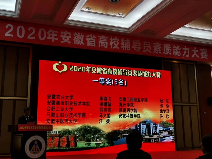 本网讯11月24日至27日,由安徽省委教育工委主办,安徽省高校思想政治教育研究会、教育部高校辅导员培训研修中心(安徽师范大学)承办的2020年安徽省辅导员素质能力大赛决赛在安徽师范大学举行。我校信息与计算机学院辅导员李南飞荣获一等奖。