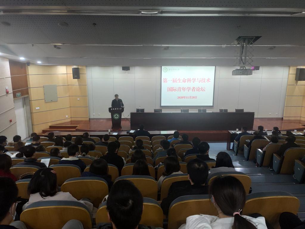 本网讯11月28日,我校第一届生命科学与技术国际青年学者论坛在图书馆第二报告厅举办,来自5个国家海内外生命科学领域的优秀青年学者汇聚一堂,展开了线上线下相结合的学术研讨与交流。校常务副校长马传喜出席并致辞。
