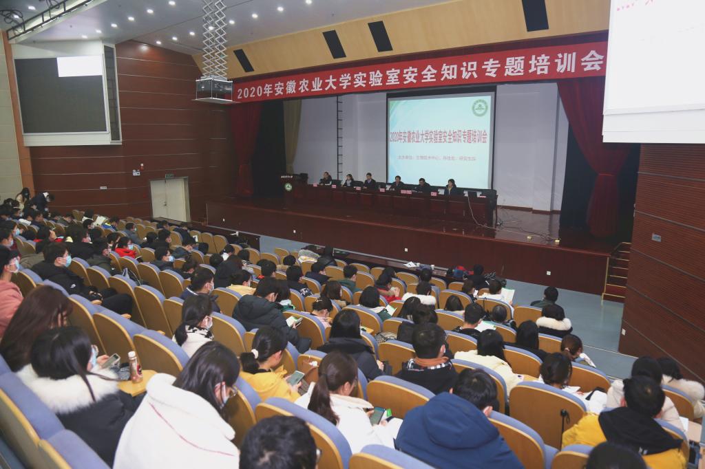本网讯12月29日下午,2020年我校实验室安全知识专题培训会在图书馆第一报告厅召开。会议由生物技术中心、科技处和研究生院联合举办,合肥工业大学实验室安全管理处处长钟华勇和安徽师范大学资产与实验室管理处长台启权应邀做专题报告,农林与生命类研究生、各PI及实验室安全负责人参加了专题培训会。生物技术中心主要负责人主持培训会。