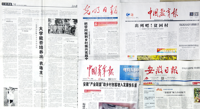 “十三五”以来,校党委坚决扛起脱贫攻坚重大政治任务,坚守“强农兴农”初心,勇担“乡村振兴”使命,构建新型农业技术推广服务体系,集聚优势科技力量和人才资源,为安徽脱贫攻坚和乡村振兴做出了积极贡献。学校定点扶贫成效年度考核连续三年被评为“好”等次。产业扶贫模式入选教育部第三届省属高校精准扶贫精准脱贫典型项目。技术转移服务中心在国家级技术转移机构考核中被评为优秀。《人民日报》整版、《光明日报》头版头条刊发学校服务脱贫攻坚工作,中央电视台科教频道18分钟时长报道张子军教授服务脱贫攻坚的典型事迹。