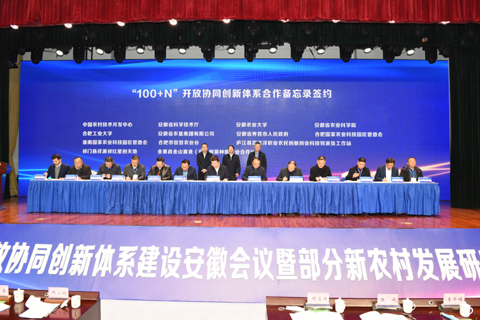 高起点布局,构建“三农”支撑体系。依据全省不同类型农业生态环境的特征,按照“共商共建共享共管”模式,学校联合地方政府联合建设8个区域性农业综合试验站,新建2个特色试验站,联合共建一个海外试验站,实现了对安徽主导农业产业的全覆盖,成为学校服务地方农业转型升级的“桥头堡”。按照“一站一策”的管理机制,不断完善试验站的运行模式。省委书记李锦斌、省长李国英分别到江淮分水岭综合试验站、大别山综合试验站、皖北综合试验站调研指导工作。承办“100+N”开放协同创新体系建设安徽会议暨部分新农村发展研究院交流会,共同探索打造安徽农业科技社会化服务体系“升级版”。携手省内外农业上市公司、龙头企业、校友企业等175家单位发起成立乡村振兴合作企业战略联盟。累计与800多家省级以上农业产业化龙头企业建立合作关系,支撑引领安徽农业农村高质量发展。与美国科罗拉多州立大学加大在农业推广领域的合作,共同成立“中美大学农业推广联盟”,共有15所中方高校、14所美方高校加入。连续三年召开“现代农业推广与技术转移国际会议”,召开两届“中美大学农业推广联盟国际工作会议”,推进了国际合作交流的广度与深度。