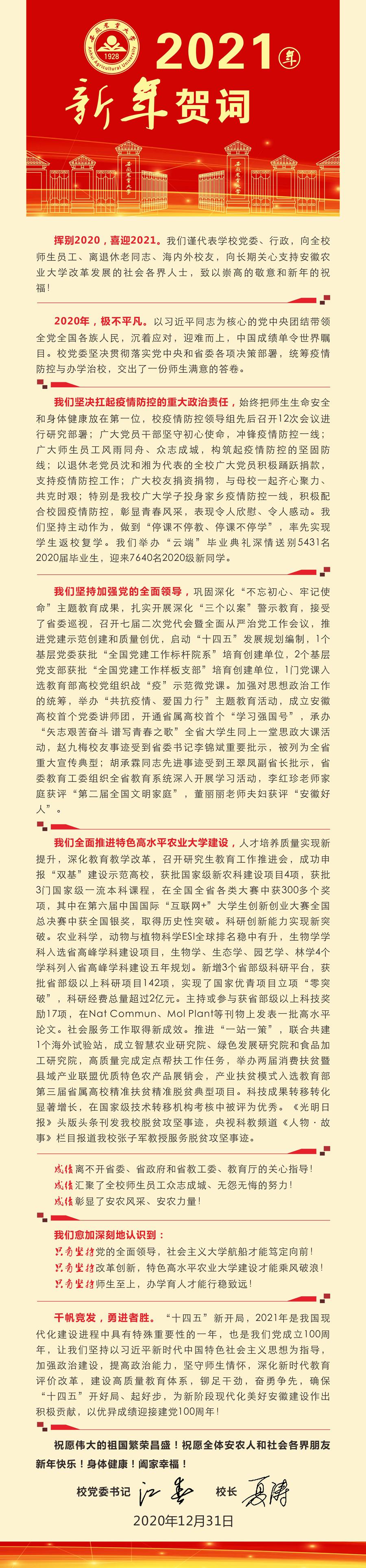 学校2021年新年贺词