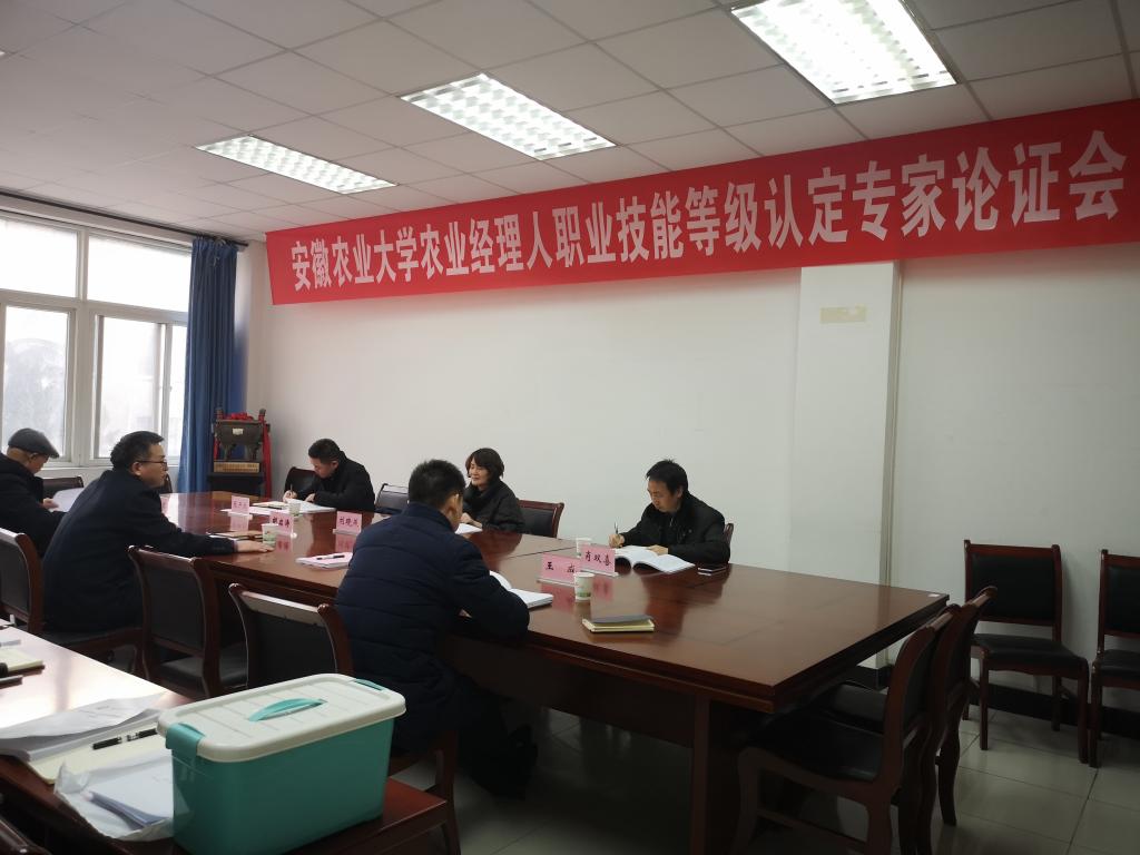 本网讯 1月15日下午,我校农业经理人职业技能等级认定专家论证会在继续教育学院会议室召开。安徽省人力资源社会保障厅职业能力建设处处长刘晓燕、省职业技能鉴定中心负责同志以及校内专家参加了论证会。