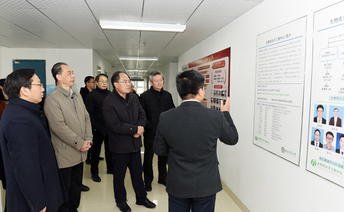 在校党委书记江春、校长夏涛、常务副校长马传喜的陪同下,赵振华一行先后考察了生物科技楼、中西部大楼,深入了解茶树生物学与资源利用国家重点实验室、作物抗逆育种与减灾国家地方联合工程实验室、安徽省粮食作物协同创新中心、生物质分子工程中心、长江经济带磷资源高效利用与水环境保护研究中心等科研创新平台建设情况,并参观了校史馆。