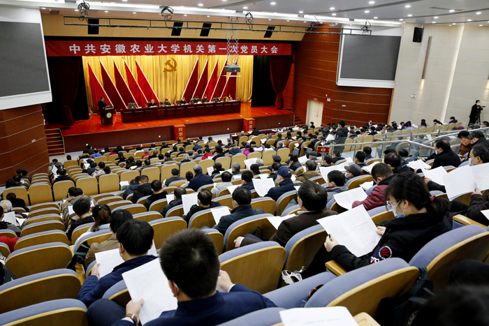 本网讯1月27日下午,我校隆重召开中共安徽农业大学机关第一次党员大会,选举产生了第一届机关党委和机关纪委。校党委书记江春出席会议并讲话,党委副书记裴树东、常务副校长马传喜、党委常委、副校长韩军、党委常委、纪委书记陈文兵、党委常委、副校长操海群出席会议。机关党员共294人参加会议。