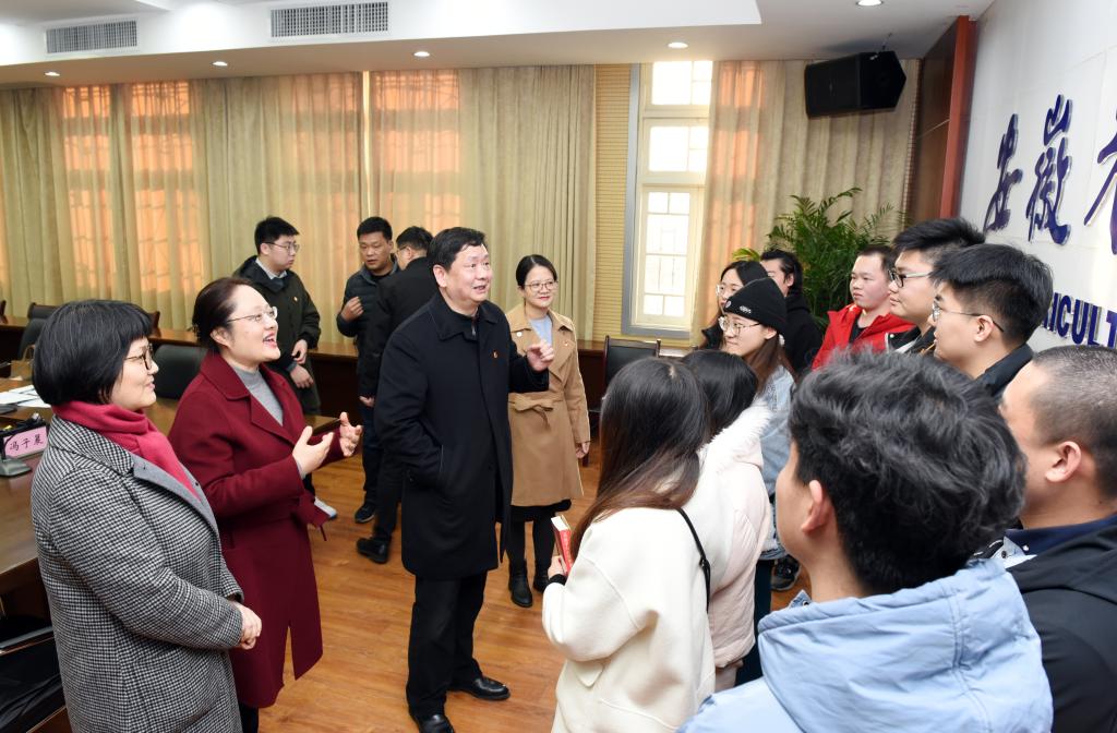 胡靖充分肯定了我校为保障留校学生的学习生活所做的多项人性化举措,感谢同学们响应国家号召、留校过年,为疫情防控作出积极贡献,并祝福同学们在校度过一个愉快而又难忘的春节。他建议同学们寒假期间要做一名特殊的“三好学生”:一是学习好,以中央一号文件、安徽省委一号文件为指引和动力,充分把握假期时间学好专业知识,提高专业技能,努力为乡村振兴贡献青春力量;二是生活好,让难忘的寒假过得有意义;三是安全好,带头遵循疫情防控相关规定并注重日常安全,过一个平安的寒假。