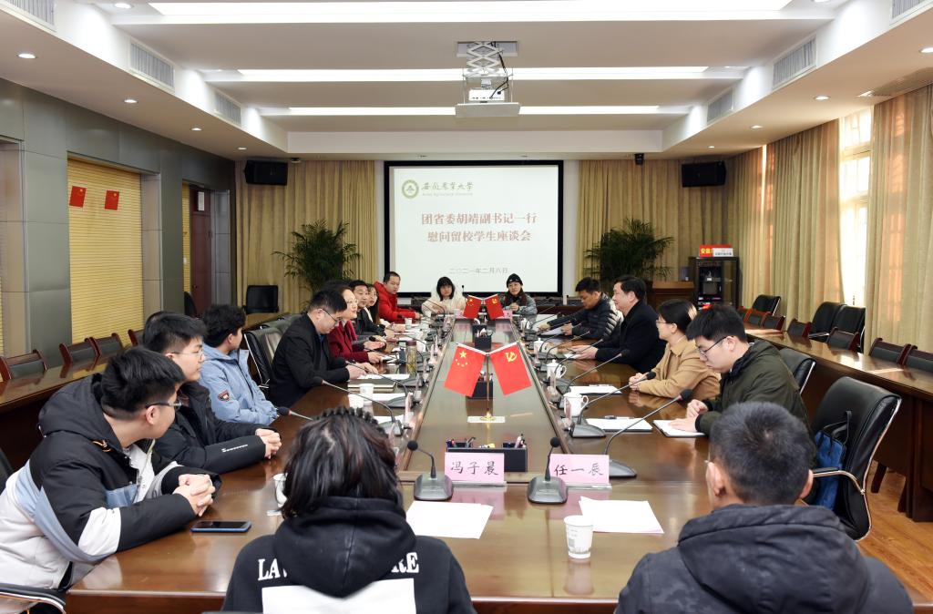 本网讯2月8日下午,团省委党组成员、副书记胡靖一行来校看望慰问因疫情留校过年的学生代表,并召开座谈会。校党委书记江春会见了胡靖一行。校学工部(处)、研究生院(研工部)、团委等单位负责同志参加,校党委常委、副校长李红主持了座谈会。