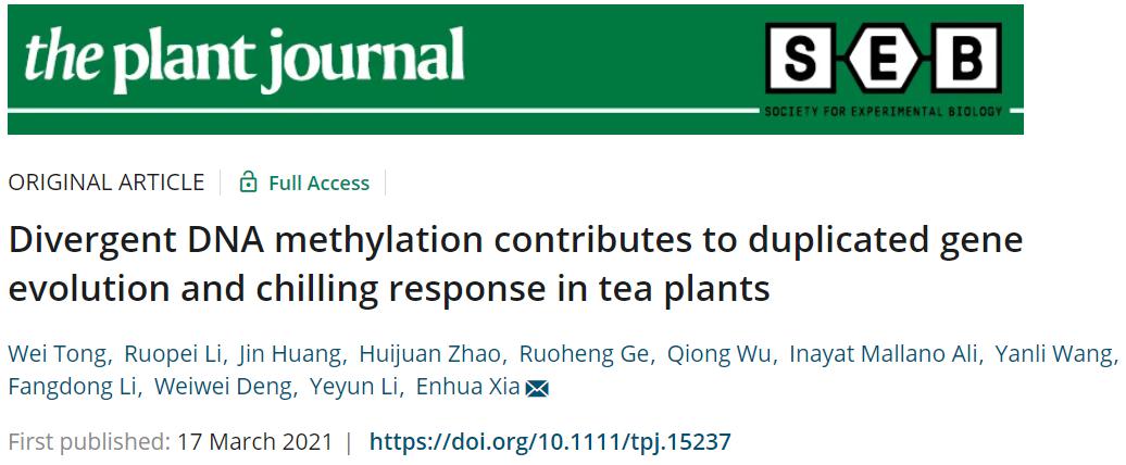 本网讯近日,我校茶树生物学与资源利用国家重点实验室夏恩华教授团队在国际权威植物学期刊The Plant Journal在线发表了题为“Divergent DNA methylation contributes to duplicated gene evolution and chilling response in tea plants”的研究论文,揭示DNA甲基化在调控茶树重复基因进化和低温应答中的重要作用。