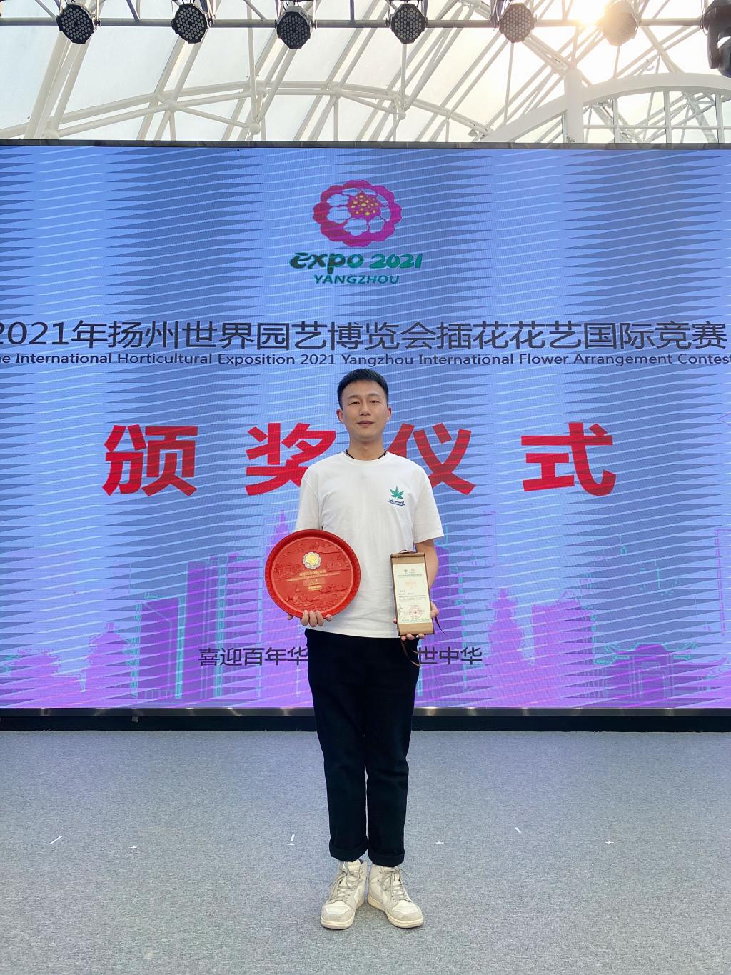 我校植物保护学院硕士研究生赵宗祥代表安徽省出战此次国际性赛事。经过5个小时的全封闭式激烈角逐,赵宗祥顺利完成三件高水平大型花艺作品。经国际竞赛总评审团境内评委及监委会成员多轮评审,三件花艺作品均在大赛中荣获佳绩,其中传统插花、写景式插花作品分别斩获大赛金奖、现代花艺作品斩获银奖。该成绩来之不易,不仅实现了安徽省花艺水平的再次突破,而且使徽派插花艺术在国际舞台上占据了一席之地。