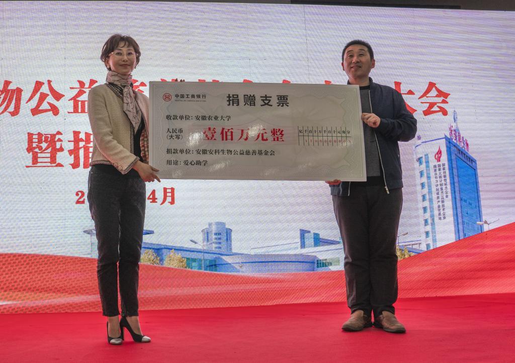 操海群指出,宋礼华先生是我校级杰出校友,更是践行中国教育慈善事业和高校立德树人的典范,并对他长期回报母校,反哺社会,馈赠中国教育表示感谢!操海群表示,安徽农业大学一定会按照基金会的章程,提高捐助资金使用效率,把企业的善举作为思政教育的鲜活教材,把安科生物“善”的基因注入到教育土壤,让更多种子茁壮成长,奉献社会,造福人民!