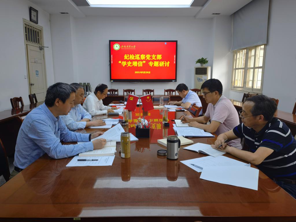 本网讯 5月26日下午,纪检巡察党支部召开支部会议,围绕“学史增信”专题进行研讨。校党委常委、纪委书记、监察专员陈文兵以普通党员身份参加专题研讨。