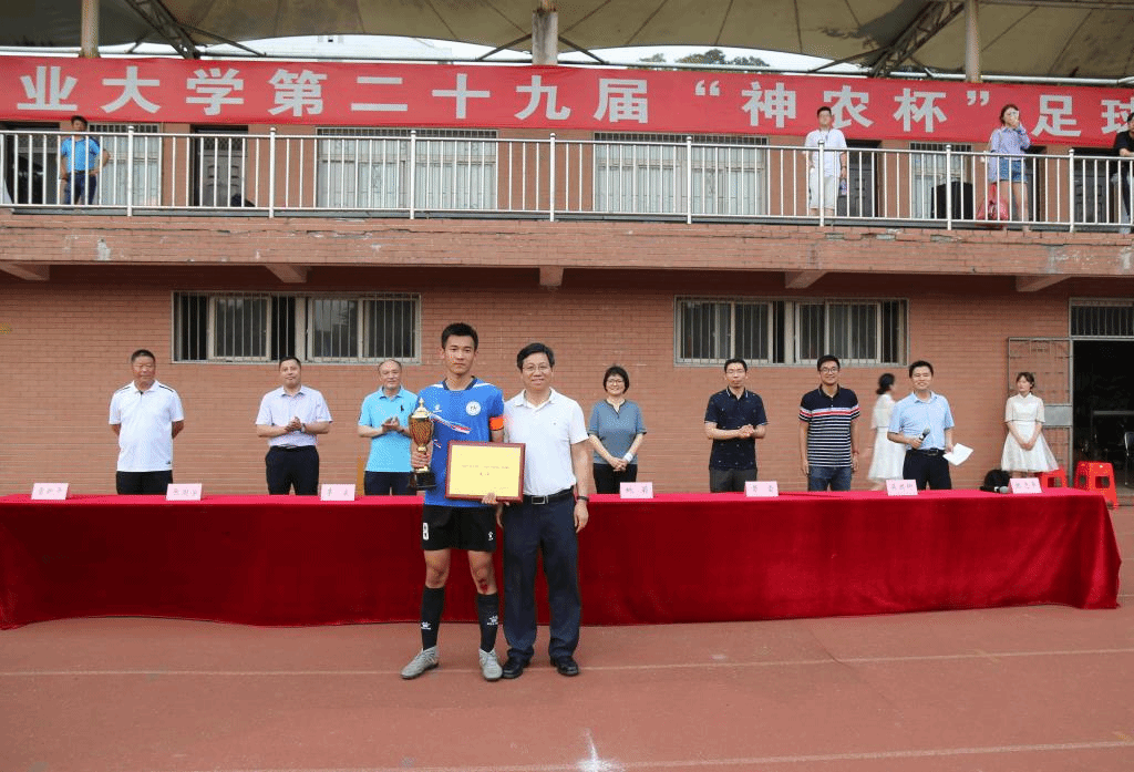 本网讯6月2日下午,我校第二十九届"神农杯"足球赛在校第一运动场落幕。校党委副书记裴树东,宣传部、学工部(处)、体育部、校团委、工学院、经济管理学院等单位负责人出席闭幕式并为获奖单位和个人颁奖。