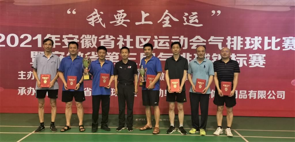 本网讯2021年6月3日,由安徽省体育局、安徽省体育总会主办的“我要上全运” ——2021年安徽省社区运动会气排球比赛暨安徽省第三届气排球锦标赛在安徽省体育馆开赛,我校教职工男子气排球队戮力奋战,勇夺第一名,并获得代表安徽省参加今年6月中旬在山东省举行的中华人民共和国第十四届全国运动会气排球项目的比赛资格。