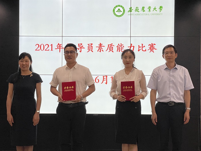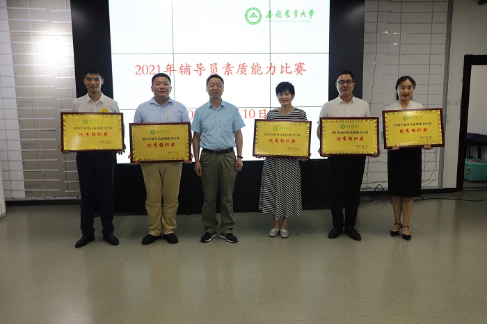 经评委现场评定,并综合笔试、案例研讨、谈心谈话三个环节的成绩总分,最终来自植物保护学院周贤超和理学院钟晨获得一等奖,园艺学院赵婷等3名选手获得二等奖、资源与环境学院岳鹏等4名选手获得三等奖,园艺学院、林学与园林学院、资源与环境学院、理学院、植物保护学院等5个学院获得优秀组织奖。