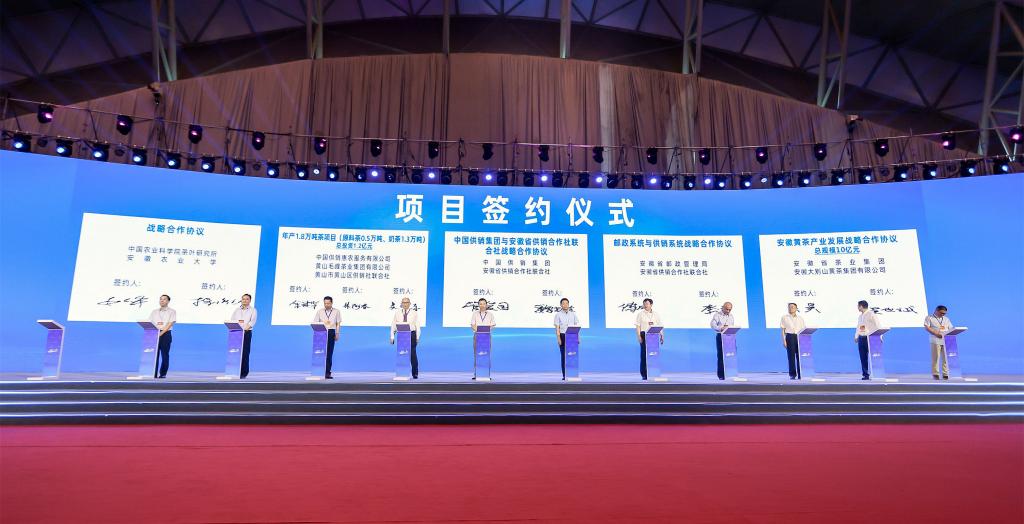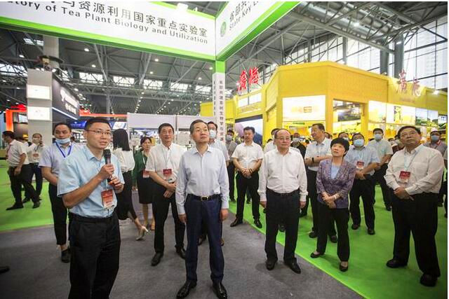 本网讯6月18日,由安徽省供销社、安徽省农业农村厅、安徽省商务厅和安徽各地市政府共同主办的2021第十四届安徽国际茶产业博览会在合肥滨湖国际会展中心开幕。校党委常委、副校长操海群出席开幕式并签约,茶与食品科技学院、茶树生物学与资源利用国家重点实验室相关负责人参加了博览会。