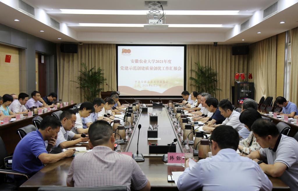 本网讯 6月29日下午,学校在第三会议室召开党建示范创建和质量创优工作交流推进会。校党委书记江春出席会议并讲话,校党委副书记裴树东主持会议,党委常委、纪委书记、监察专员陈文兵出席会议,党建工作领导小组成员单位负责人,入围现场汇报的10个二级党组织和25个党支部负责人参加了汇报会。