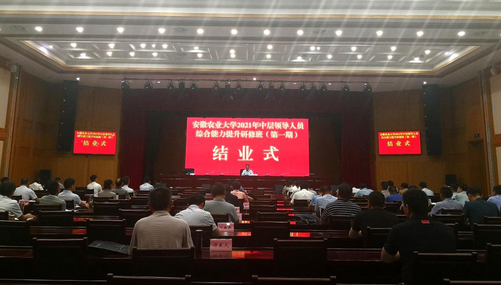 本网讯 7月4日,学校中层领导人员综合能力提升研修班(第一期)在安徽组织干部学院正式结业。校党委常委、组织部部长韩平主持结业总结会并讲话,全体学员参加结业式。