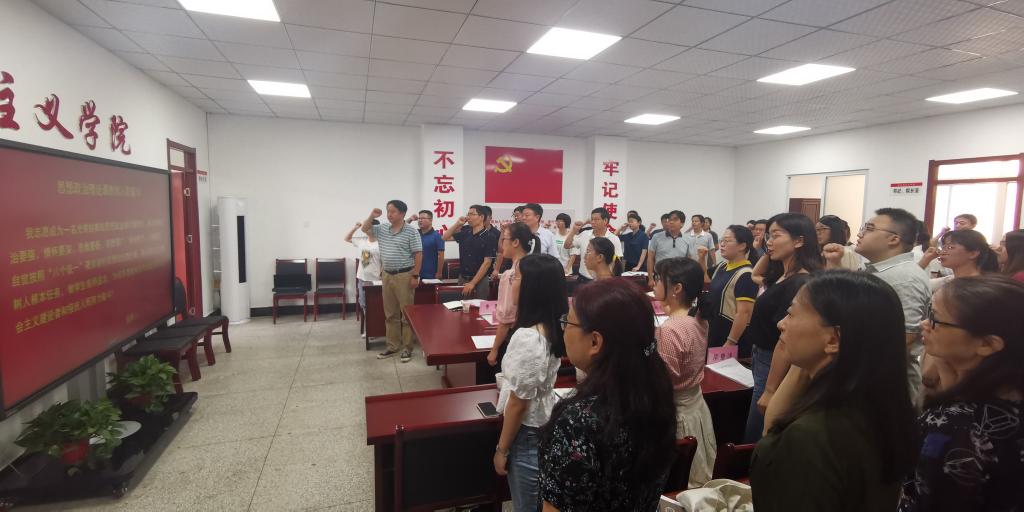 本网讯为帮助新进教师尽快完成角色转换,增强作思政课教师的责任感、使命感,进一步加强教师队伍建设,提升思政课教学效果,7月14日下午,马克思主义学院新进教师入职教育开班并进行入职宣誓。校党委副书记裴树东出席并讲话,党委宣传部、教师工作部、教务处等部门负责人及全体思政课教师参加开班式。活动由马克思主义学院党总支书记、院长黄洪雷主持。