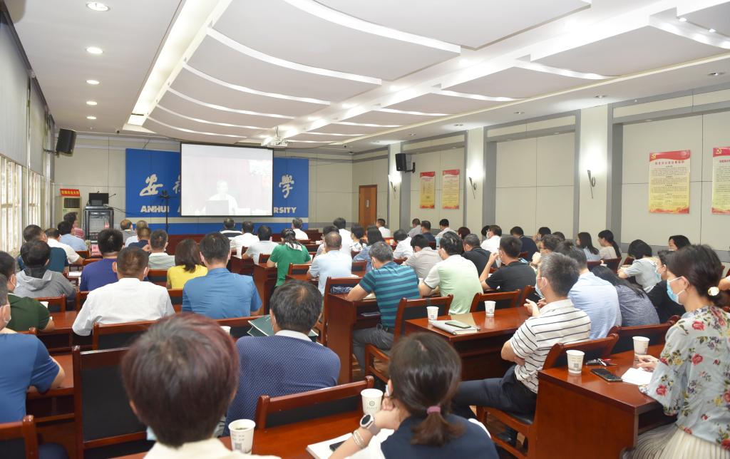本网讯7月28日上午,我校在第二会议室设置视频分会场,组织参加学习贯彻习近平总书记“七一”重要讲话精神省委宣讲团宣讲报告会。报告会邀请省委宣讲团成员、安徽师范大学党委委员、教授路丙辉作学习贯彻习近平总书记“七一”重要讲话精神宣讲。校领导江春、夏涛、李红、马传喜、韩军、陈文兵、操海群,机关各部门、校直各单位负责人,各学院党委副书记以及思政课教师代表参加了报告会。省委教育工委书记钱桂仑主持报告会。