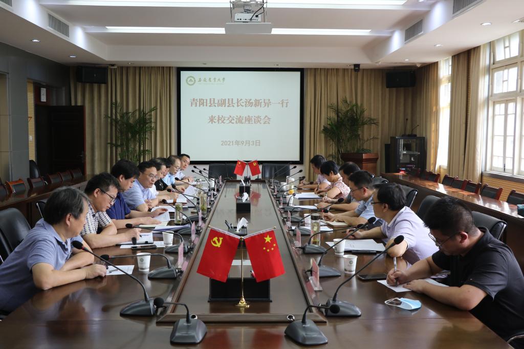操海群对汤新异一行表示欢迎,并介绍了我校校地合作和服务乡村振兴的相关情况。他希望,我校与青阳县围绕乡村振兴,按照“聚焦难点、抓住重点、打造亮点”的工作思路,不断创新合作模式,实现共赢。