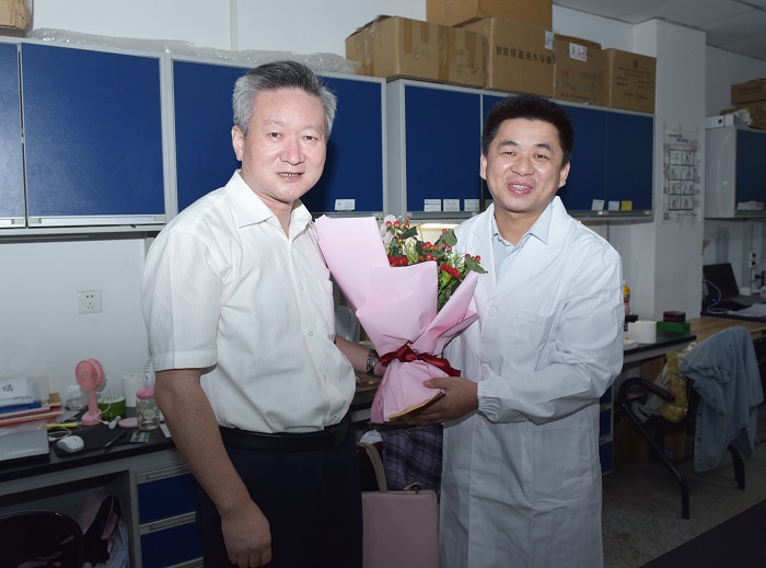 校党委书记江春看望慰问了茶与食品科技学院张梁教授,祝贺他获批国家优秀青年科学基金,对他在教学、科研和人才培养等方面取得的突出成绩表示肯定,详细询问了他在科研工作、学习生活等方面情况,勉励他和团队成员深入学习贯彻习近平总书记关于教育、“三农”工作重要论述,牢记习近平总书记对广大教师提出的殷切期望,立足岗位,勇攀高峰,为学校事业发展贡献智慧力量。