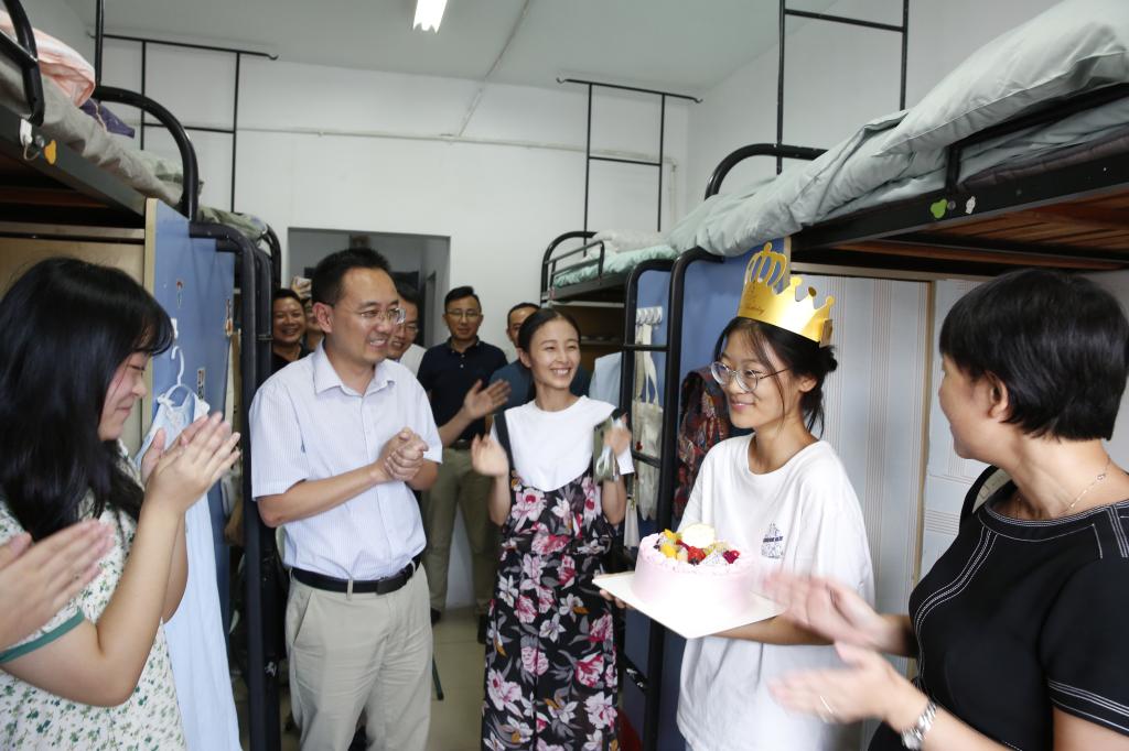 当十八岁的生日与入学报到重合,当成为辅导员后的第一个生日恰逢迎接自己的第一批学生,这样的日子都值得纪念。校学工部(处)为26名报到当日生日的新生准备了生日蛋糕,各个学院的党政领导班子亲自带着蛋糕深入学生宿舍为新生祝福。校党委副书记裴树东、学工部(处)处长姚莉及学院有关领导亲自为迎新当天生日的新生专职辅导员送上了生日蛋糕,并深入学生宿舍,看望慰问新生,与新生进行深入交流。