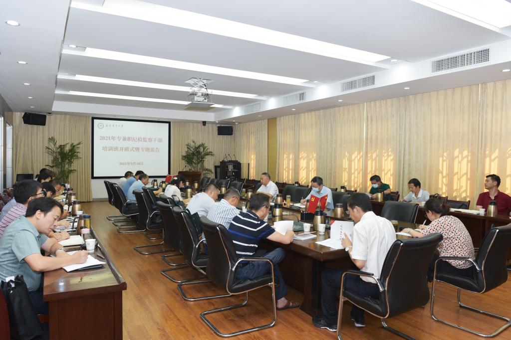 本网讯根据学校党委、纪委年度干部教育培训计划,9月18日下午,我校2021年专兼职纪检监察干部培训班在第三会议室开班。校党委常委、纪委书记、监察专员陈文兵出席开班式。校纪委委员、二级纪委书记、二级党组织纪检委员和学校专职纪检监察巡察干部等参加了开班式并接受培训。