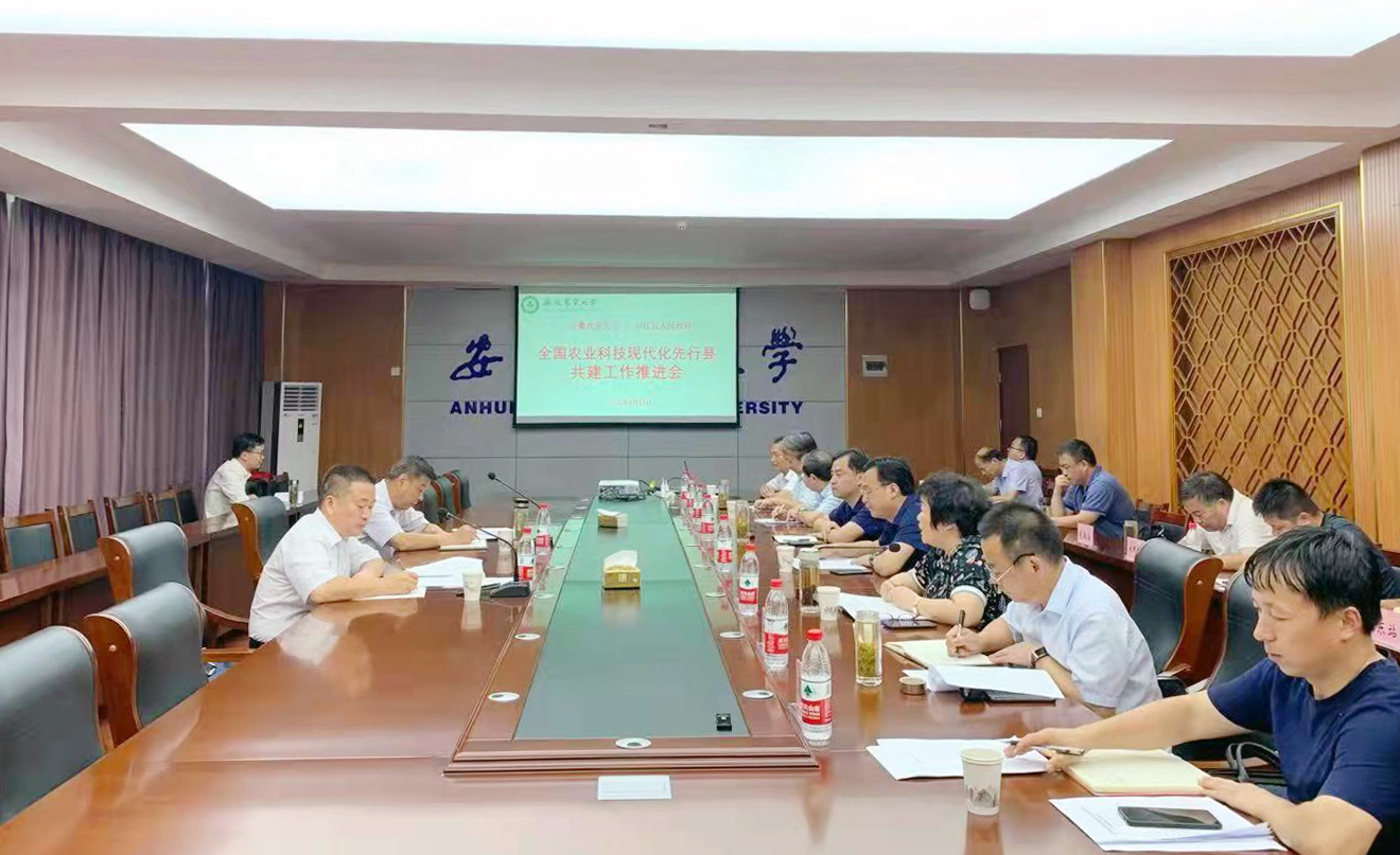 操海群指出,学校和庐江县合作共建有着坚实的基础、巨大的潜力和广阔的前景,学校将根据农业农村部关于全国农业现代化先行县总体要求和省农业农村厅及省科技厅的工作部署,认真贯彻落实共建工作。他强调,先行县共建规划制定要突出高站位、高起点、高科技、高标准和高效率,体现高水平,以庐江国家农高区建设为载体,依托“100+N”开放协同创新体系,围绕庐江县主导产业和特色产业,从粮食生产到农产品加工到优势品牌创建,系统谋划,由点到线及面地推动科技、人才、资本、数据等各类创新要素在庐江县域聚集,加快科技与产业、科技与经济深度融合,推动县域优势特色产业转型升级和提质增效,让产业效益变成农民收益,树立县域农业科技现代化先行典型,示范引领全国乡村振兴和农业农村现代化。