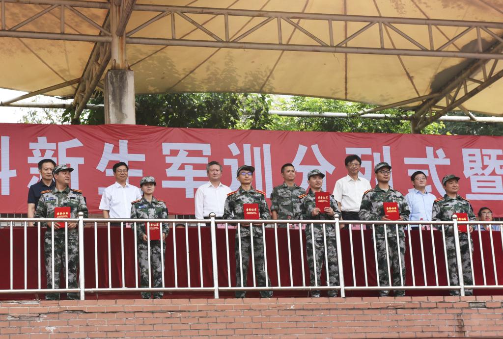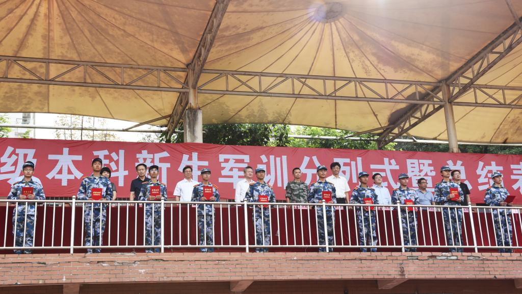 本网讯金秋九月结硕果,丹桂飘香话丰收。9月25日上午,我校2021级本科新生军训分列式暨总结表彰大会在田径运动场举行。校党委书记江春,党委副书记裴树东,承训单位领导张明超出席大会。党委常委、副校长韩军主持会议。