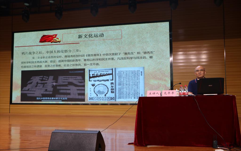 “同学们,为什么要觉醒?当代新青年应以什么样的态度迎接并创造中国的美好未来?”2021年9月,电视剧《觉醒年代》的编剧龙平平做客我校“神农大讲堂”,与青年学子在这场“跨越百年”的思想碰撞中探寻共产党人的建党初心。没有“填鸭式”的宣讲,没有枯燥的说教,龙老师用生动的语言、讲故事的方式将革命先烈的先进事迹娓娓道来,点燃了台下数百名同学的情感共鸣,瞬间让大家感动的热泪盈眶。