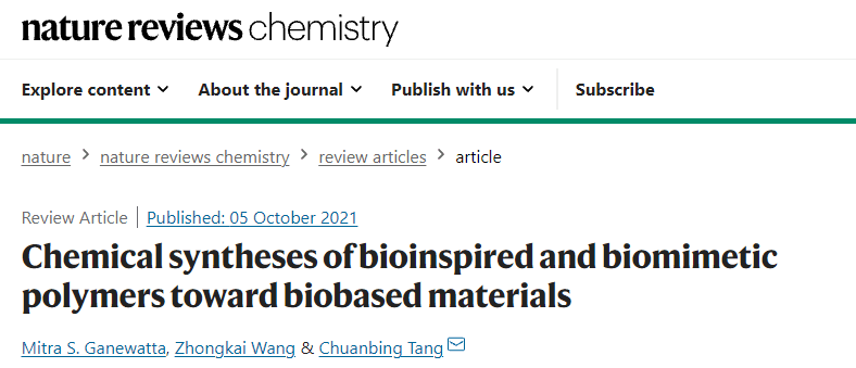 本网讯近日,安徽农业大学生物质分子工程中心与合作者共同撰写了综述文章,探讨了农林生物基材料在仿生领域的最新进展,并从交联网络、动态相互作用和自组装等角度,提出对生物基仿生材料化学合成的新见解。相关文章以“Chemical syntheses of bioinspired and biomimetic polymers toward biobased materials”为题发表在Nature Reviews Chemistry(Nature子刊 影响因子34.035),汪钟凯教授为本综述共同第一作者。