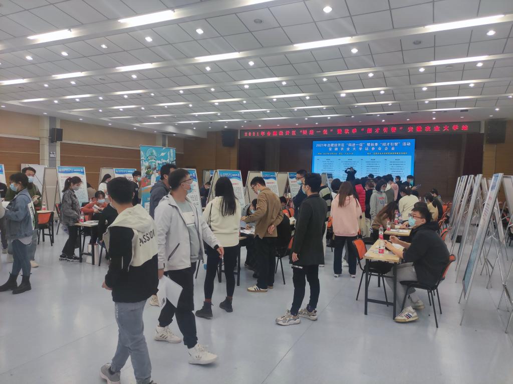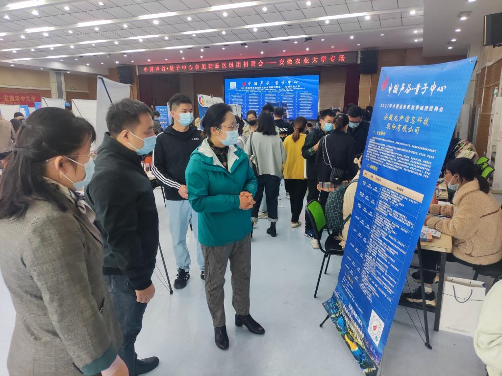 本网讯 为进一步服务安徽经济社会发展,搭建好2022届毕业生就业平台,促进毕业生充分高质量就业,我校于10月21-22日在校欣苑食堂四楼多功能厅举办合肥地区优质企业系列招聘会,合肥市高新区、包河区、经开区人社部门先后组织共172家用人单位来校招贤纳才。招聘会期间,校党委常委、副校长李红到现场视察指导工作。