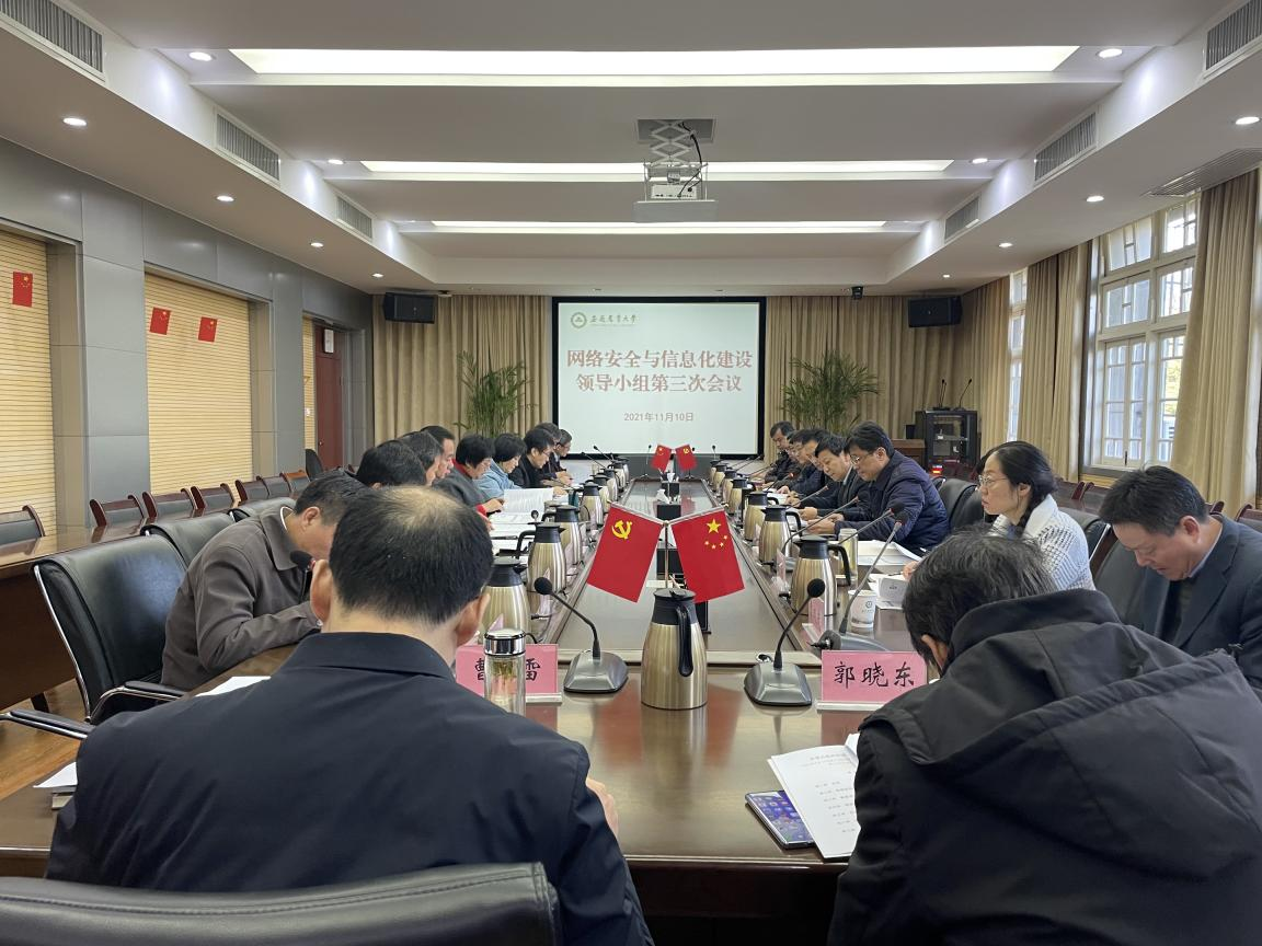 本网讯11月10日上午,我校召开2021年度网络安全与信息化建设领导小组第三次会议,就学校近期网络安全和信息化建设工作进行研究部署。党委副书记裴树东,党委常委、副校长韩军出席会议,校网络安全与信息化建设领导小组成员参加了会议。
