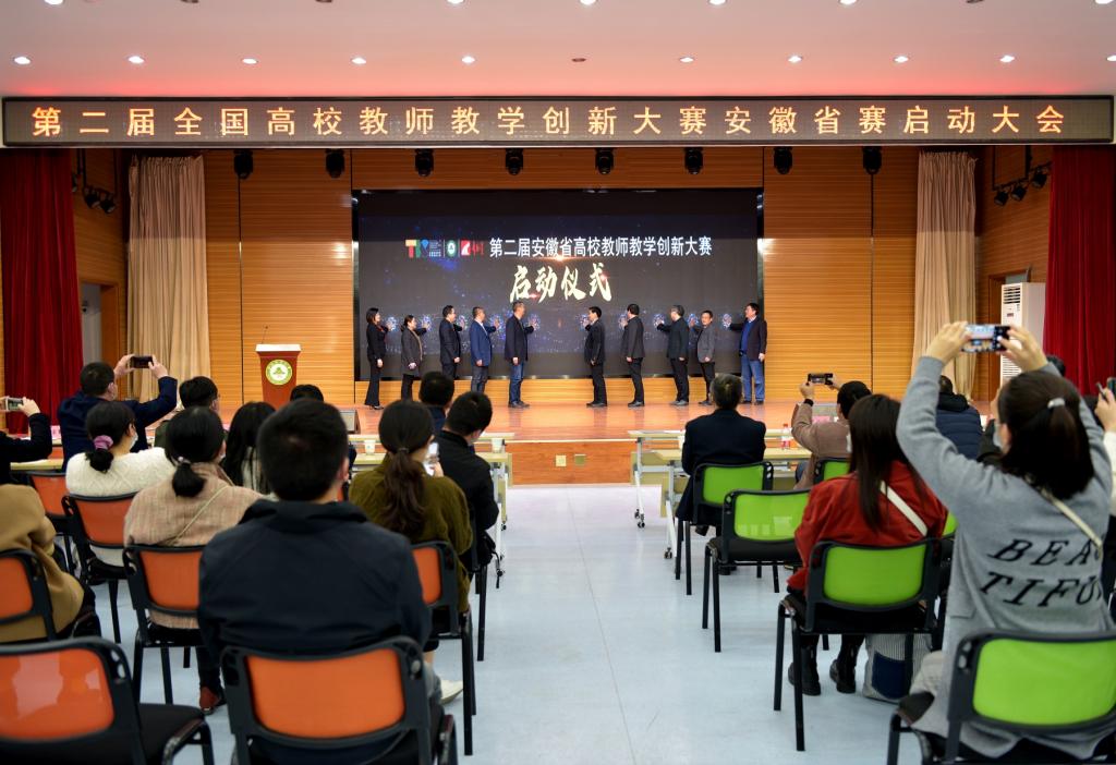 在全体参会人员的共同见证下,与会领导共同启动了第二届全国高校教师教学创新大赛安徽省赛比赛。