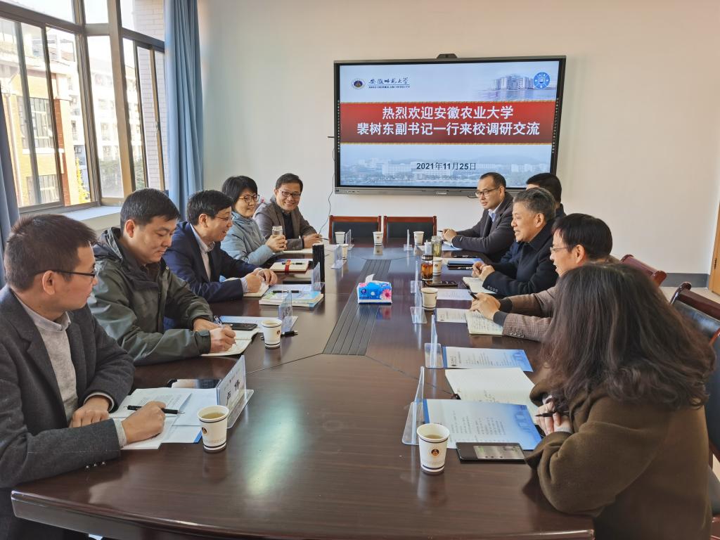 本网讯11月25日,校党委副书记裴树东率队赴安徽师范大学考察交流。安徽师范大学党委副书记蒋家平,党委常委、副校长陆林热情接待了裴树东一行。我校学工部(处)、保卫处等单位负责同志陪同调研。
