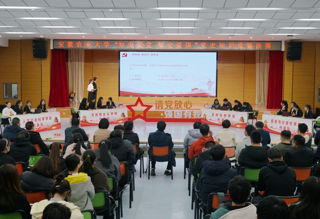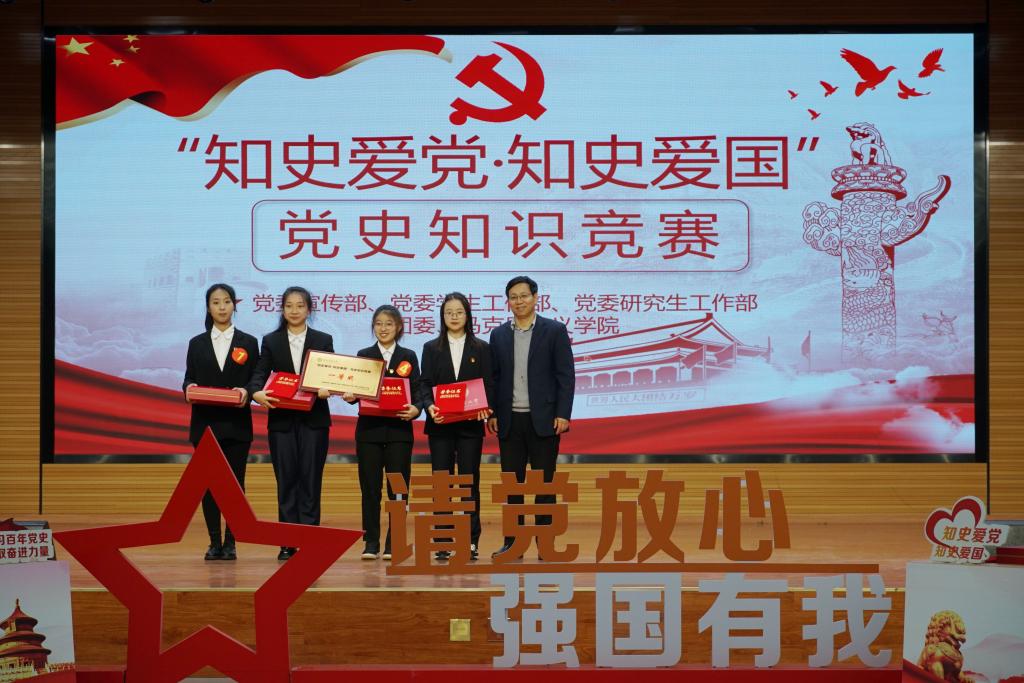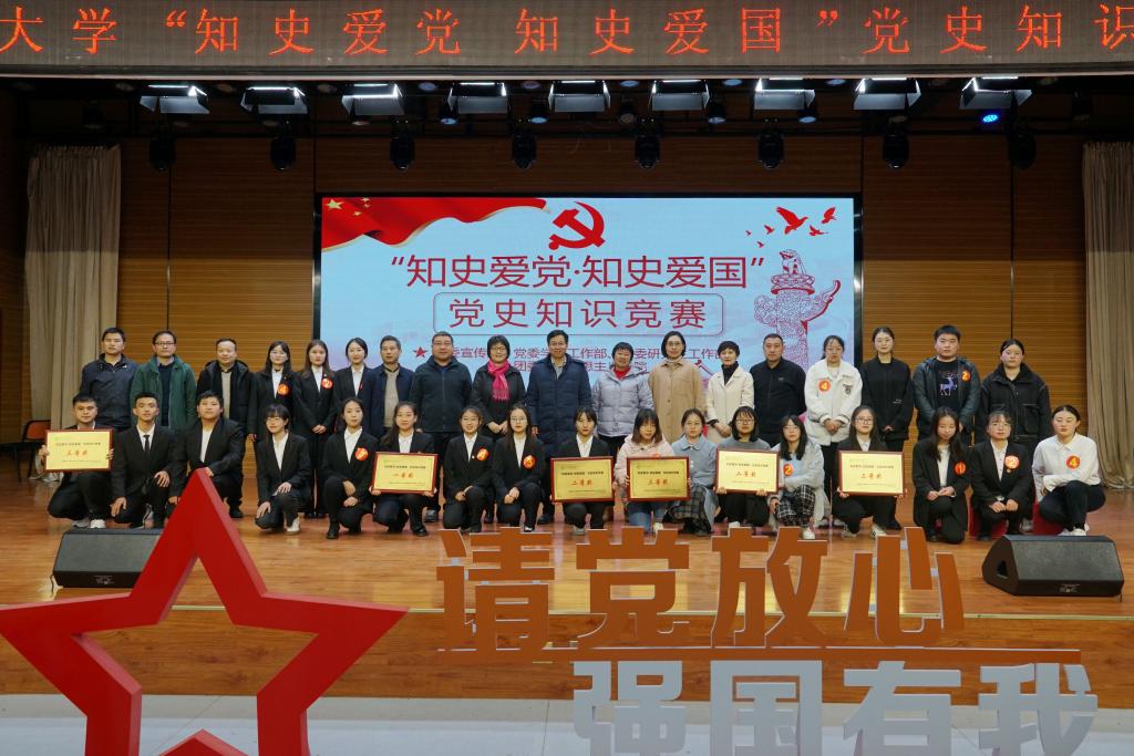 本次大赛由校党委宣传部、学工部、研工部、团委、马克思主义学院联合举办,分初赛和决赛环节。自10月初启动以来,各学院积极组织、师生踊跃参赛,数百人参与初赛线上答题,最终6支代表队闯入决赛。通过“以赛促学”的方式,丰富了学习形式,拓展了学习内容,进一步引导青年大学生重温党的光辉历程与伟大成就,增强爱党爱国情感,激励学生知史爱党,知史爱国,把学习成效转化为丰富思想和精神的强大动力,坚定走中国特色社会主义道路的信心决心。
