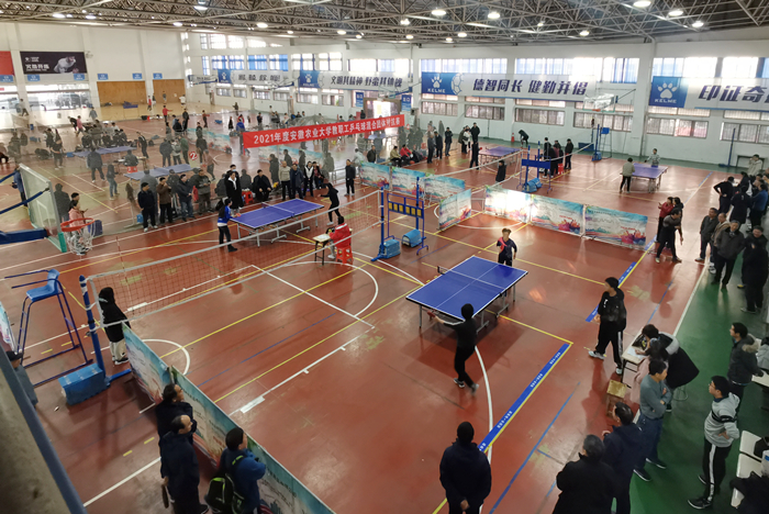本网讯为丰富教职工校园文化生活,提升乒乓球爱好者的竞技水平,为教职工提供一个以球会友、展现团队合作精神的舞台。由工会主办,体育部、教职工乒乓球协会承办的2021年度教职工乒乓球混合团体对抗赛于12月4-5日在校室内体育馆举行。全校20支部门工会代表队、近200名教职工运动员以及一批乒乓球爱好者,参与了这一活动。党委常委、副校长韩军参加了比赛并出席颁奖仪式为获奖代表队颁奖。