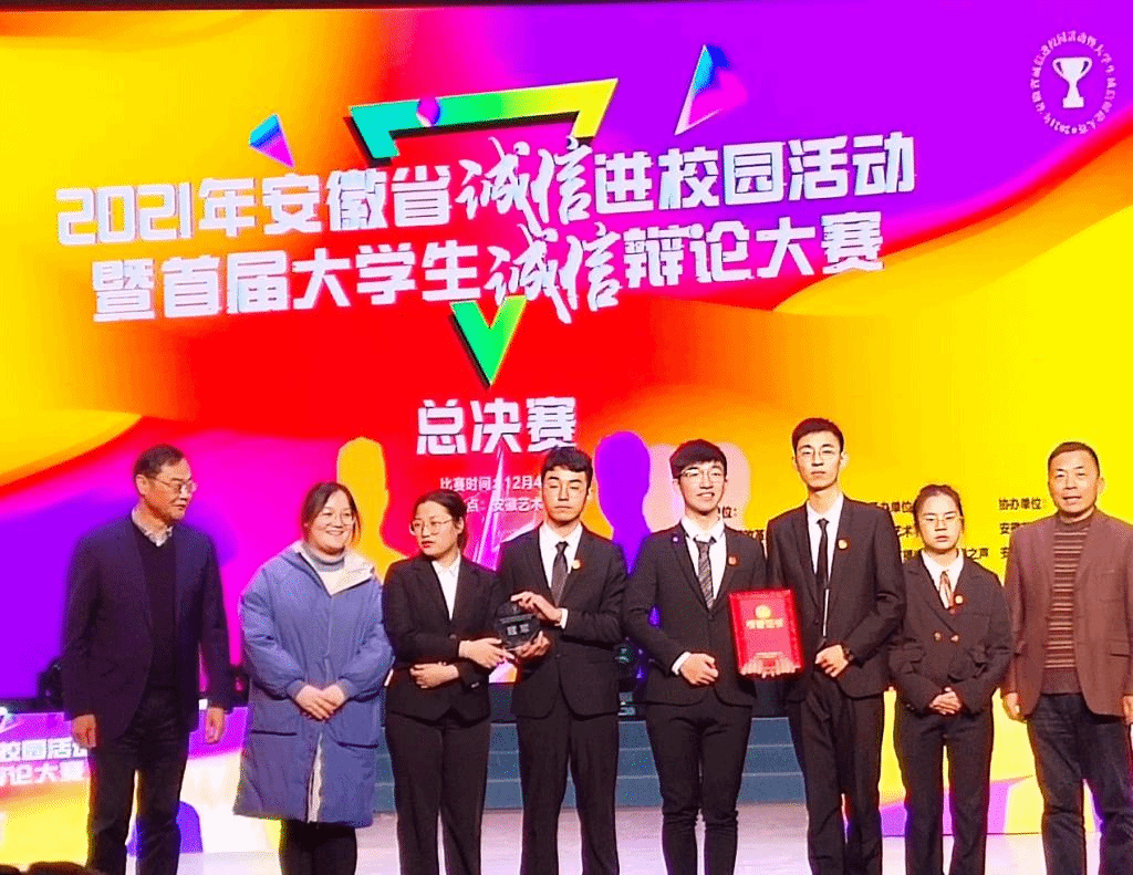 本网讯12月4日下午,2021年安徽省诚信进校园活动暨首届大学生诚信辩论赛在安徽艺术学院圆满落幕。经过紧张激烈的比拼,我校代表队摘得桂冠,为6个月来的努力付出划上圆满句号。
