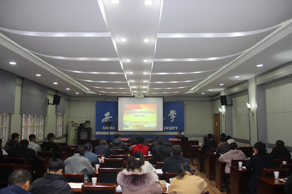 朱波代表省征兵办对我校长期以来高质量完成征兵工作给予充分肯定,并对学校各级领导对征兵工作的重视表示感谢。他结合即将出台的《安徽省普通高校征兵工作实施办法》,围绕政策出台的背景、意义及目标要求,以及高校在征兵工作中需要开展的九个方面重点工作向与会师生作了专题辅导,并就下一步学校征兵工作提出了建议。