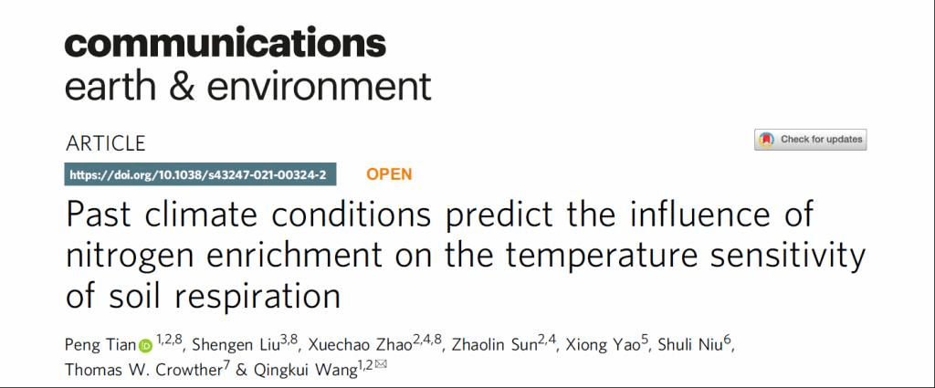 本网讯近日,我校林学与园林学院森林土壤生态与全球变化课题组在自然科研旗下期刊Communications Earth & Environment发表题为“Past climate conditions predict the influence of nitrogen enrichment on the temperature sensitivity of soil respiration”的科研论文,系统阐述了古气候对全球变化背景下土壤碳释放的遗留效应。